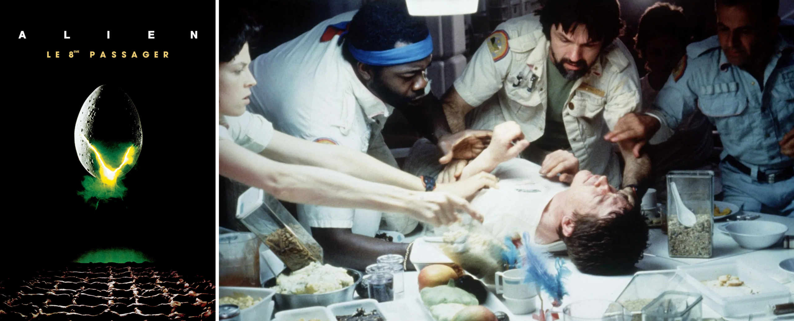 The pitch : Le vaisseau commercial Nostromo et son équipage, sept hommes et femmes, rentrent sur Terre avec une importante cargaison de minerai. Mais lors d’un arrêt forcé sur une planète déserte, l’officier Kane se fait agresser par une forme de vie inconnue, un arachnide qui étouffe son visage. Après que le docteur de bord lui retire le spécimen, l’équipage retrouve le sourire et dîne ensemble. Jusqu’à ce que Kane, pris de convulsions, voit son abdomen perforé par un corps étranger vivant, qui s’échappe dans les couloirs du vaisseau…